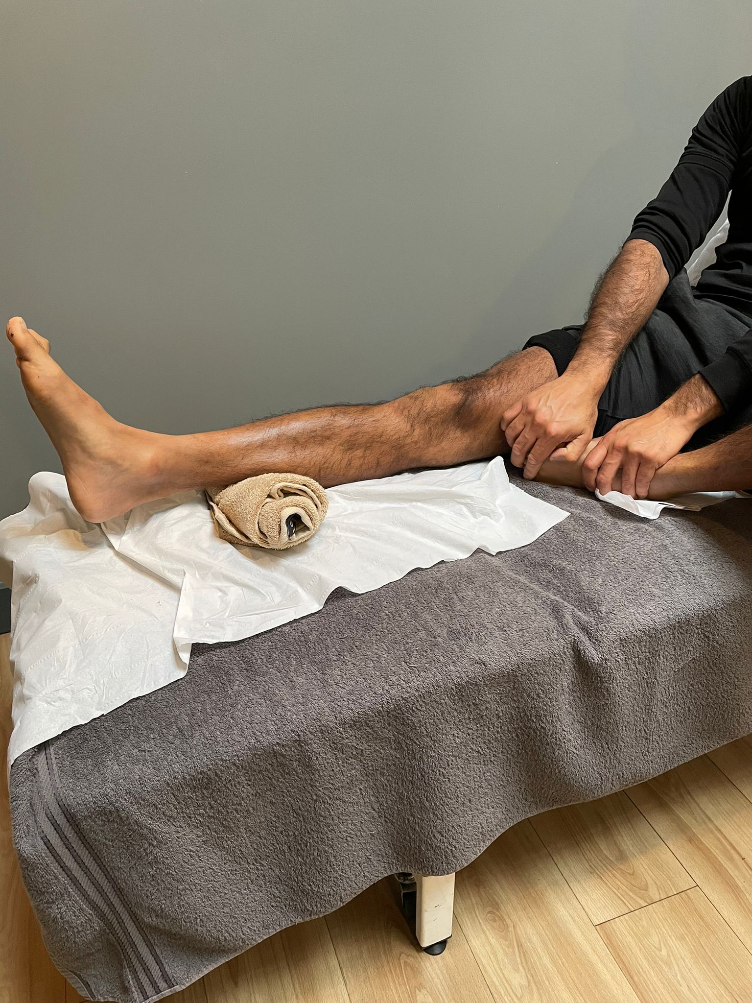 Top Tip If the towel is too big, it can be painful for the knee to drop into such a big space. Start with folding the towel and building up the height under the ankle.