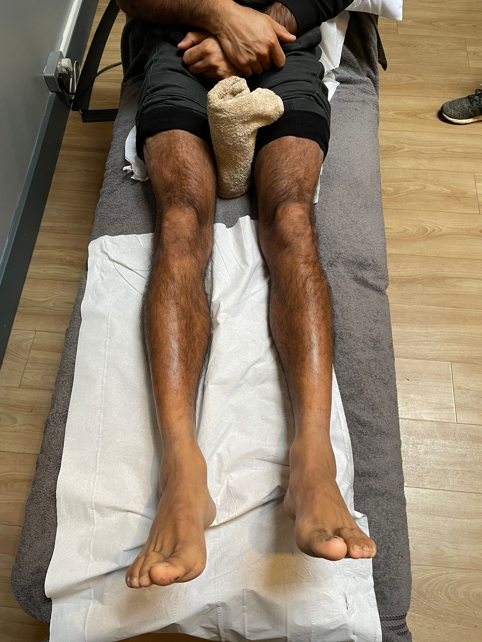 Top Tip If the towel is too big, it can be painful for the knee to drop into such a big space. Start with folding the towel and building up the height under the ankle.